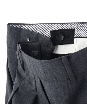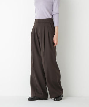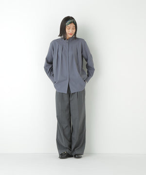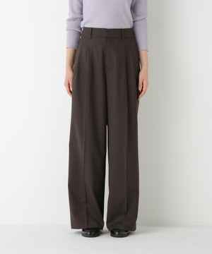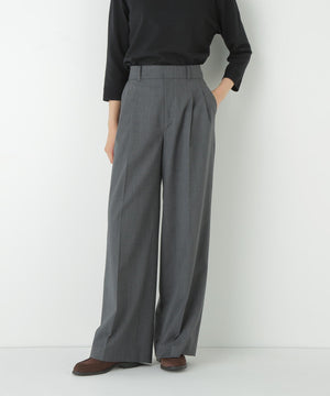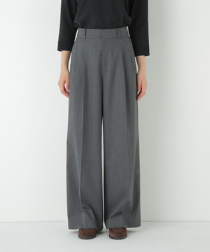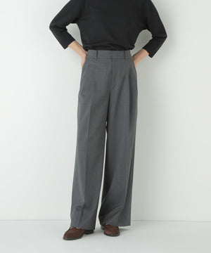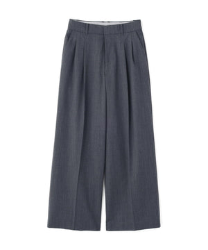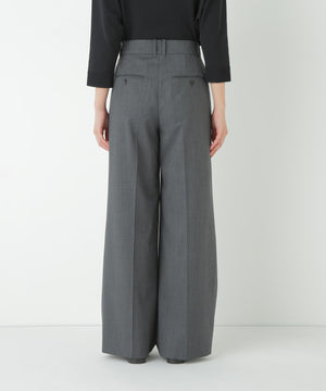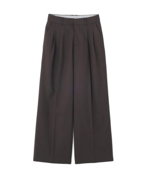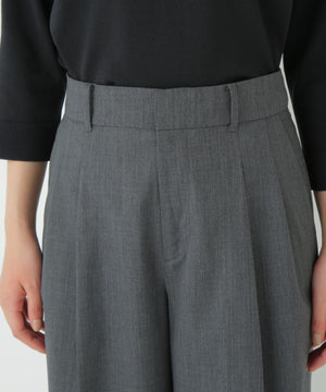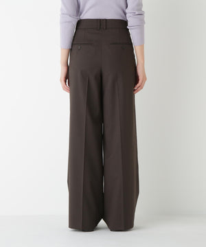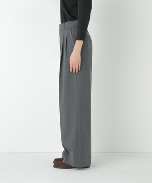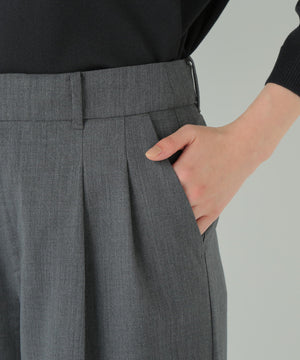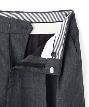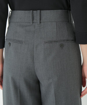ヒップから裾までまっすぐに落ちるバギー型のツータックパンツです。ウェストの内側マーベルトの中にボタンホールゴムを仕込んであるので、ウェストのサイズ調節が可能です。