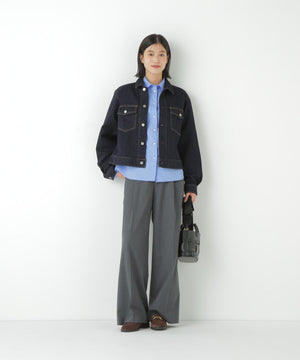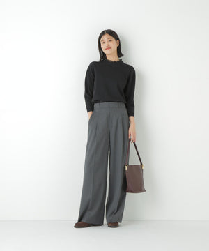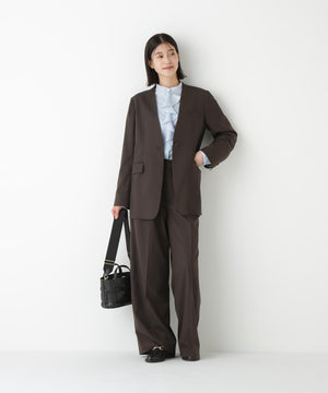 ウールにストレッチ糸とリサイクルポリエステルを混紡した糸をブレンドしているので形態回復性に優れた素材で体に馴染みます。