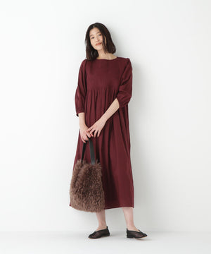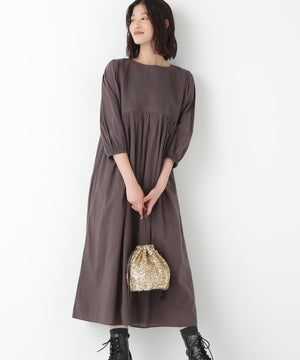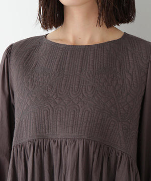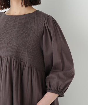 インドらしいクラフト感のある繊細なオリジナル図案のキルティングを胸元にドッキングしたリラックス感あるギャザーワンピースです。