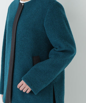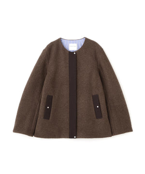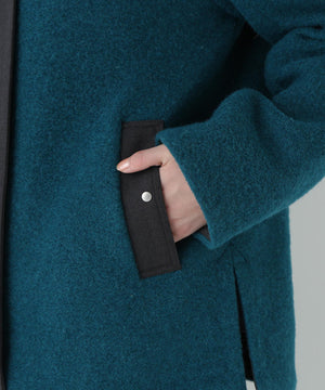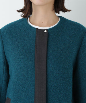 スライバーとはイタリアで開発され、糸にしてから織るのではなく繊維をそのまま編み込んで作る特殊な製法で作られている素材です。空気を含みボリューム感があるのに軽いのも特徴です。別布には高級感あるポリエステル混ウールギャバを使用しています。