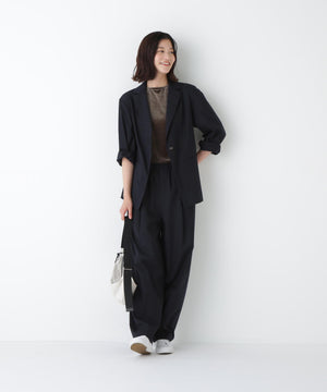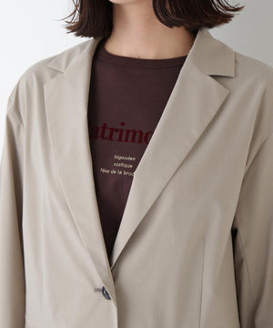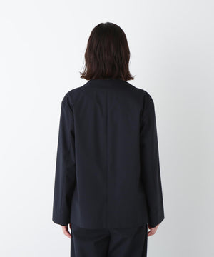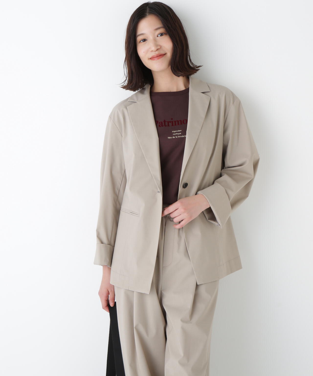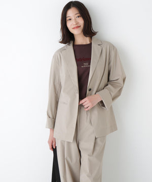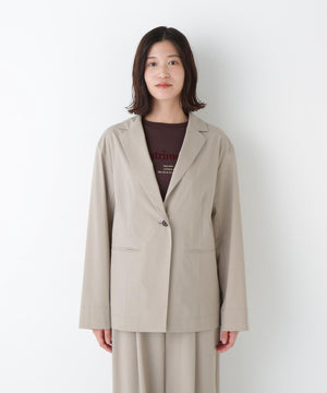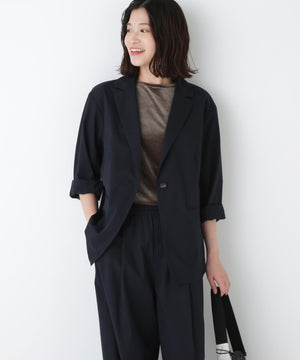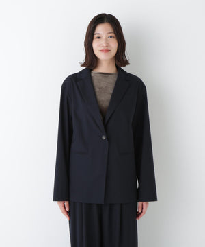 肌離れ感のあるボックスシルエットの軽い一重仕立てシングルテーラードジャケットです。