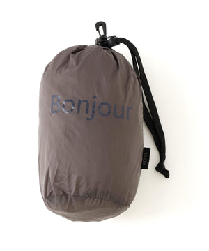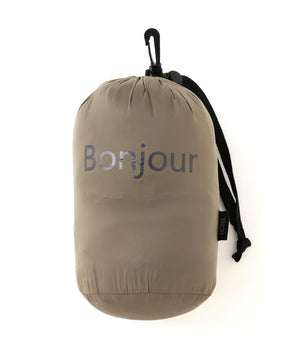 昨年人気だったインナーダウンにもなるTAIONのベーシックなライトダウンブルゾンを今期も別注しました。今年はサイズ感を昨年よりややゆとりを持たせて、さらにリバーシブル仕様にアップデートしています。左胸に「h」の刺繍を入れパッカブルの巾着付きです。