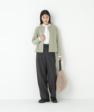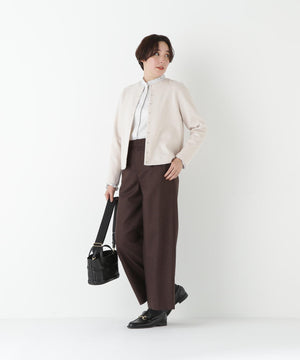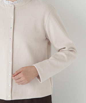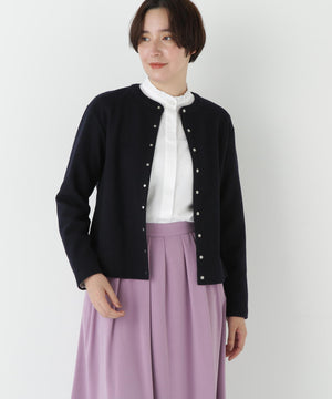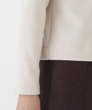 肌面にコットンとレーヨンを使用することにより、チクチク感を解消しさらっとした着心地を再現した圧縮ウールジャージーを使用しています。ご家庭でも手洗い可能な素材です。ブラック、エクリュ、モカ、ネイビー、セージの5色展開です。
