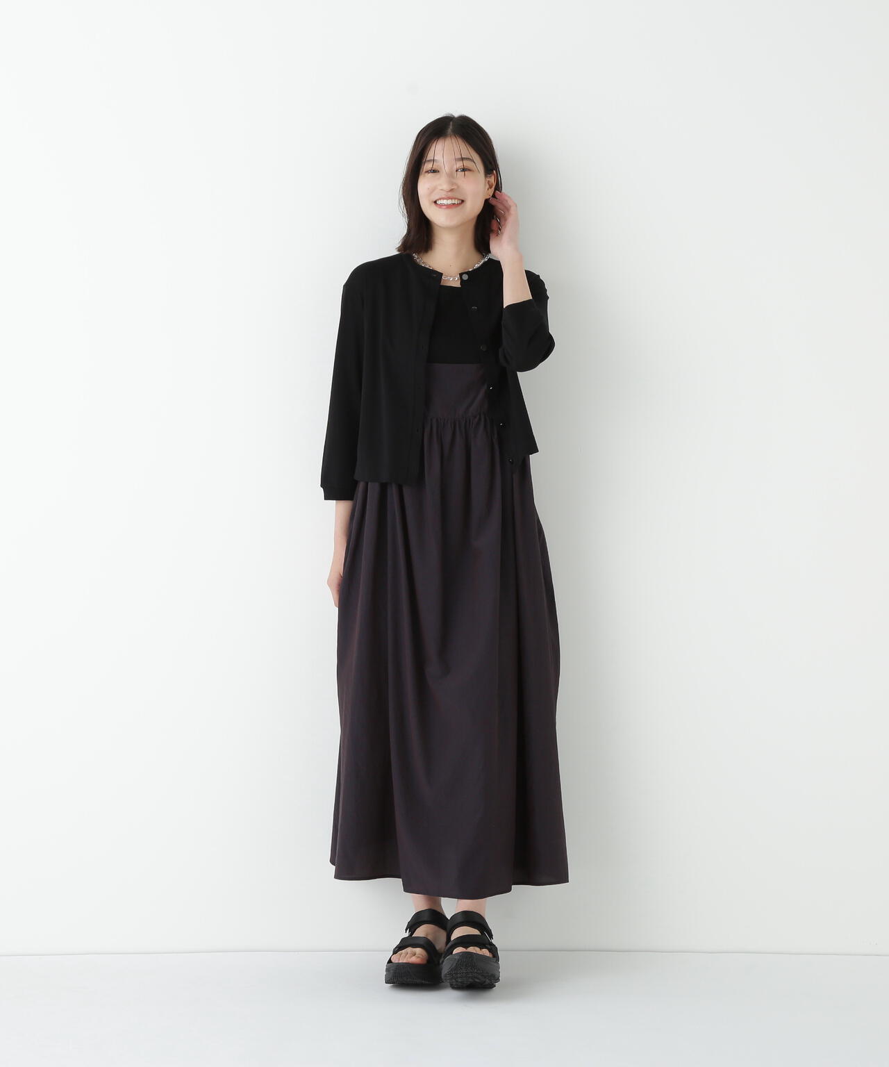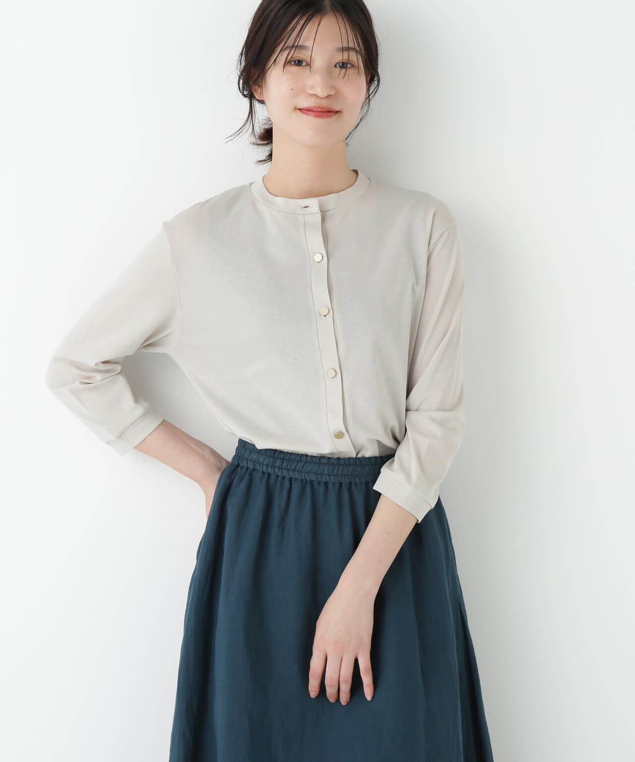 シンプルなデザインでオンオフ問わず活躍します。ボタンを留めてプルオーバーとしても着回せるアイテムです。冷房対策としてバッグに忍ばせておくのもおすすめです。