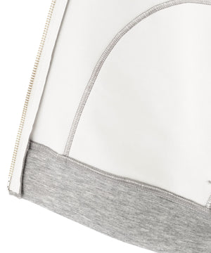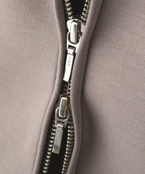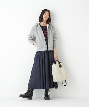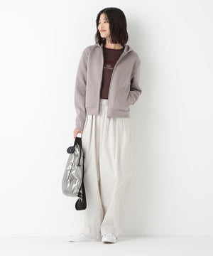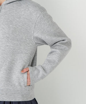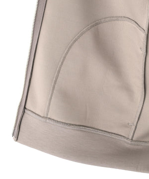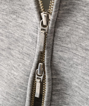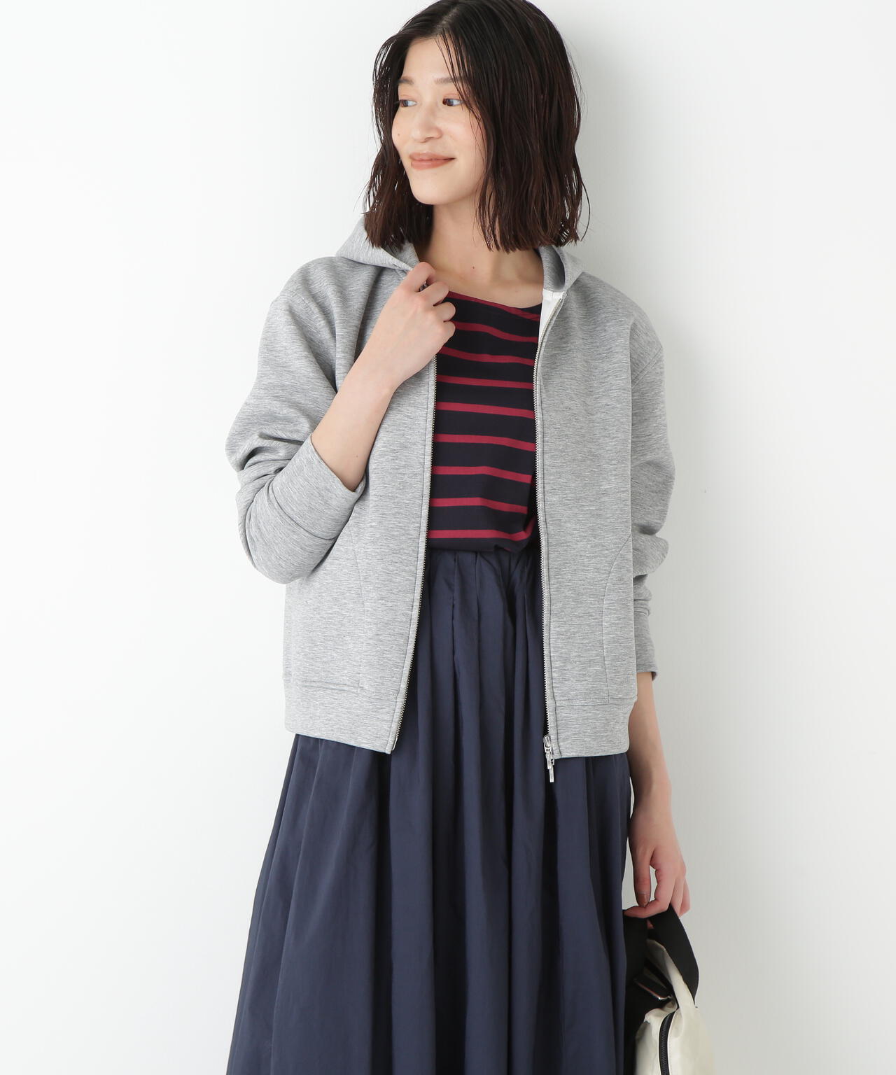 キレイ目に仕上げたジップパーカーです。逆開ファスナーや前振った脇線を利用したスラッシュポケット、二重仕立てのフードなどシンプルながらも着心地を重視し仕上げています。