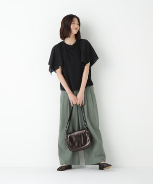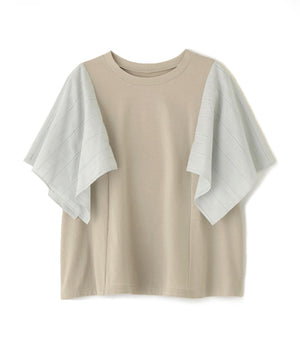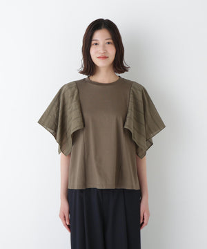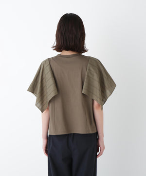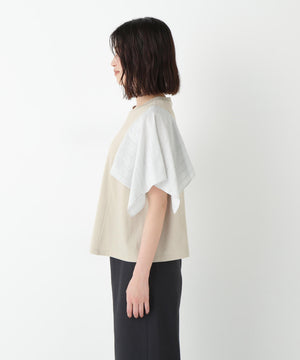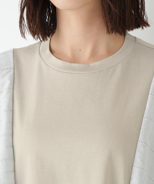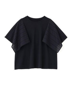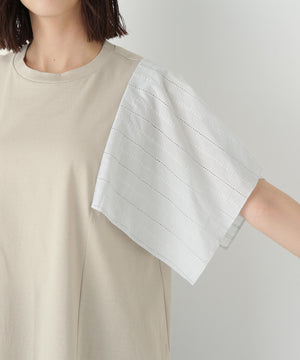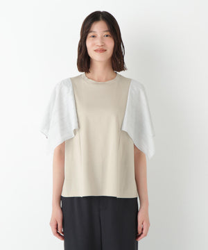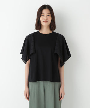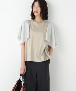 ハンカチーフヘムのレース袖がポイントのドッキングデザインTシャツです。身頃はシンプルなAラインシルエットです。