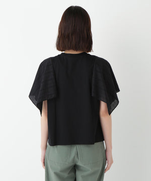 異素材のレース袖が映えるデザインTシャツ