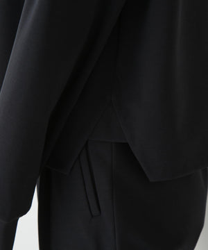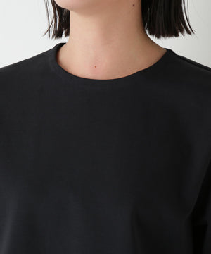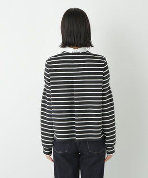 細番手の綿混ストレッチポンチです。しっかりした肉感と適度なハリ感、キックバックの良さが特徴のカットソーです。衿はほのかに地柄の見えるコットンピンオックスを使用しており、クレリック見えに白で仕立てています。プルオーバーのみブラックボーダーも展開しています。