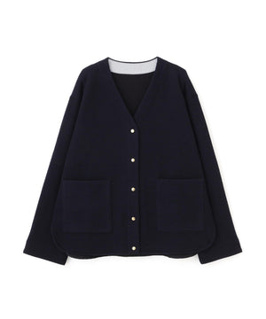 ブラウスなどきれいめなトップスの羽織りにおすすめなアイテムです。コートインもできるシルエット感でおつくりしています。