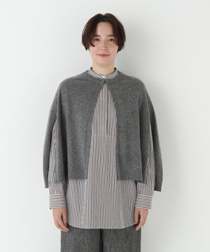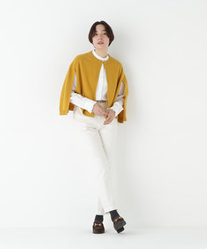 ロンTやブラウスなどにプラスワンしていただくと鮮度あるスタイリングに仕上がります。バランスの取りやすいショート丈なので、スカートにも相性のいいケープニットです。