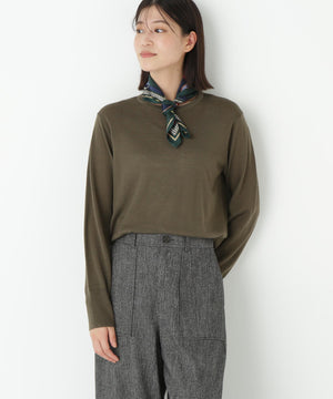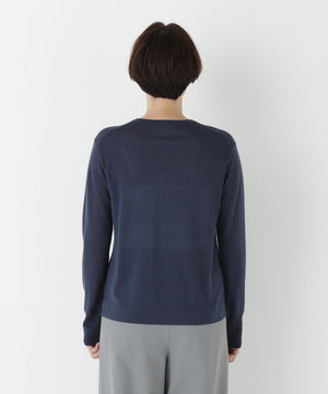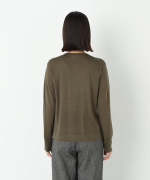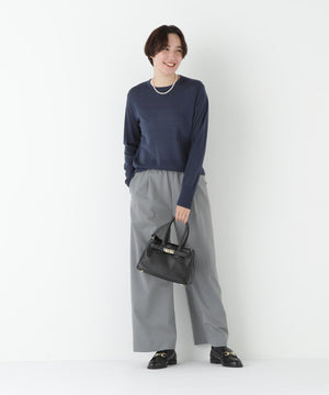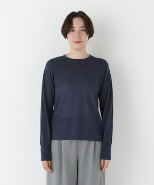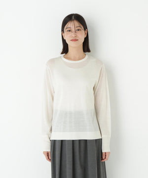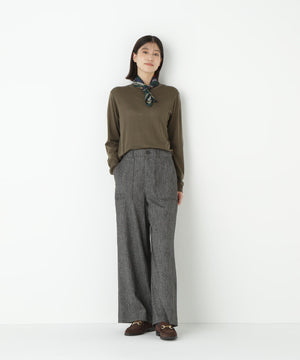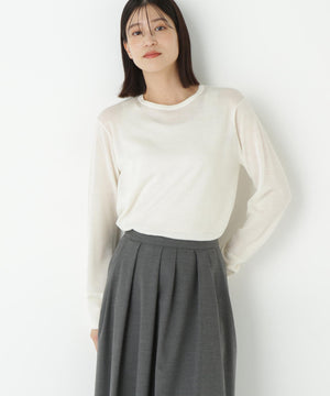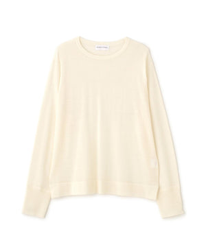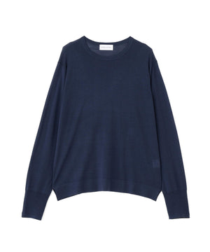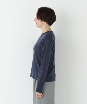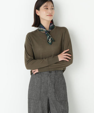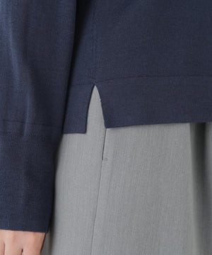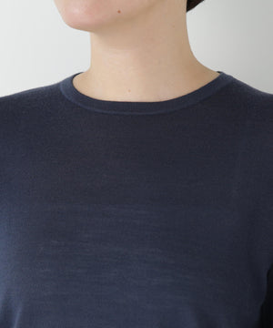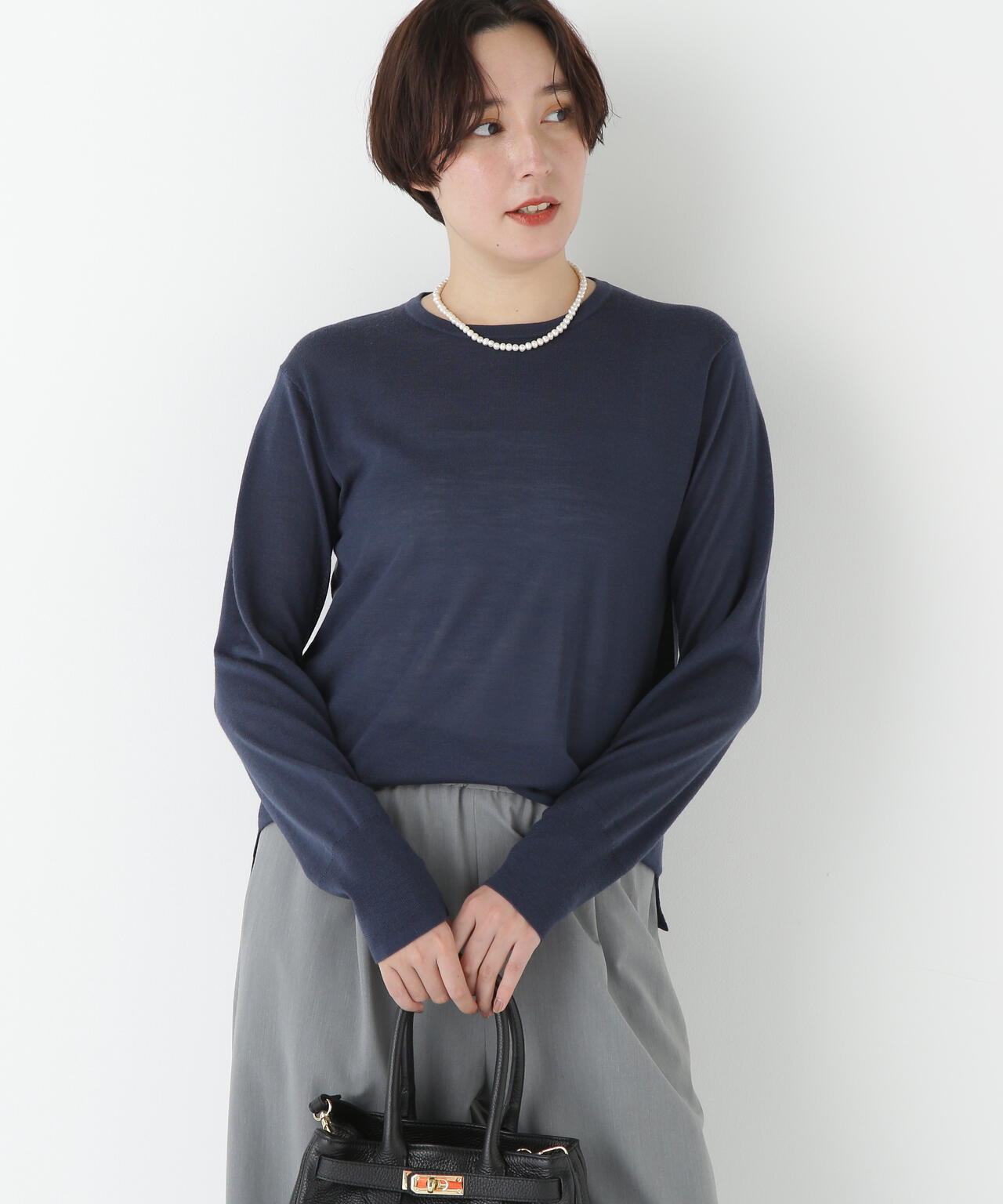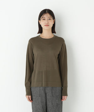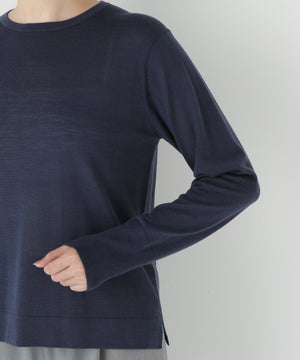 上質な梳毛で編み立てたベーシックなクルーネックニット。襟元も天竺ウールで大人っぽい仕上がりです。