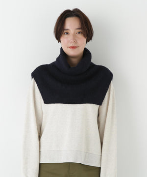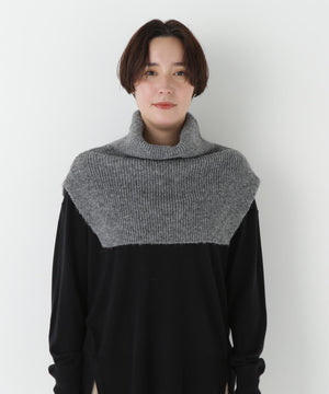 タートルネック仕様のスリットベストです。human womanとのダブルネームとして着用しやすいサイジングで展開します。