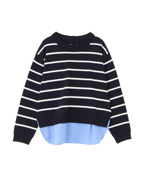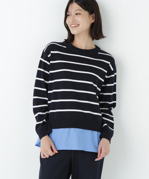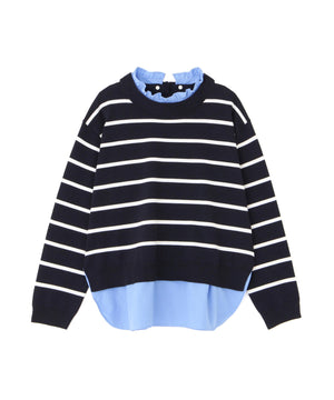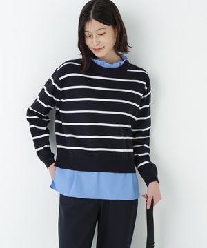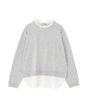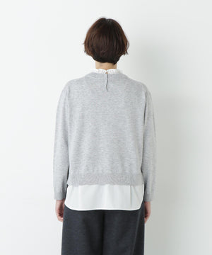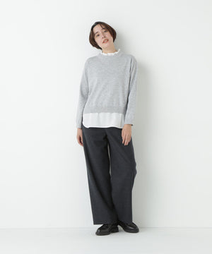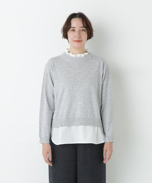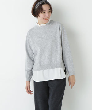 一枚で様になる、フリルブラウスを重ね着したような布帛ドッキングニット