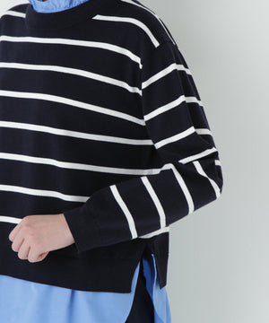 ウール混の薄手ニット。さらりとした着心地で長いシーズン着ていただきやすい肉感です。