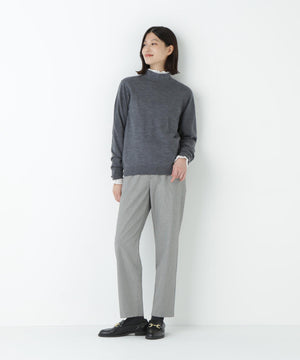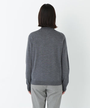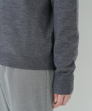 洗えるウール100%。毛玉が起きにくくケアのしやすい素材です。編地の目面がしまっており表面がフラットで美しい光沢感が特徴です。