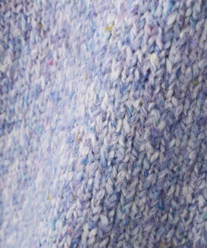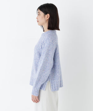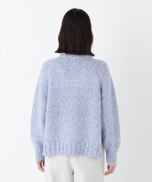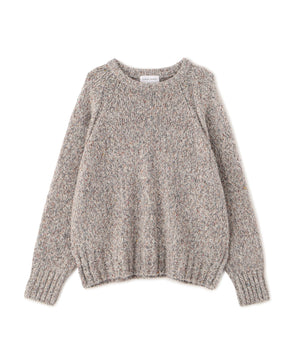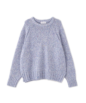 多色使いのMIXヤーンで編立たクルーネックプルオーバーです。ラグラン線を裏目のライン使いにしてアクセントにしました。