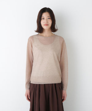 上品なシアー感をもつラメ素材のハイゲージプルオーバー