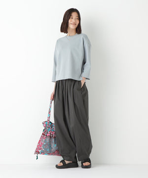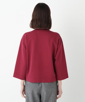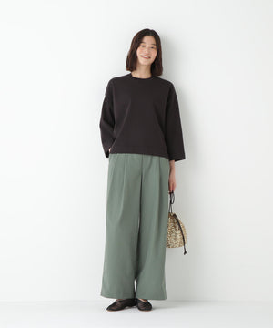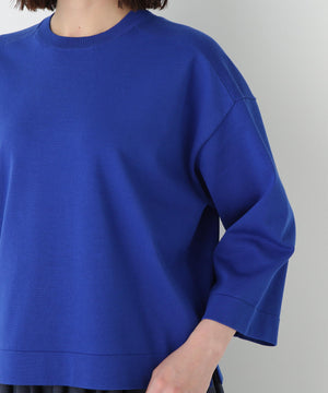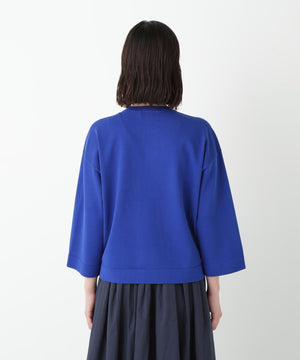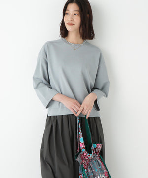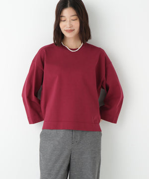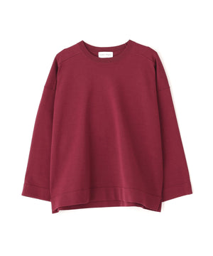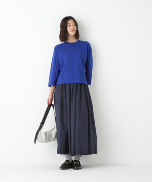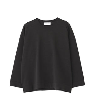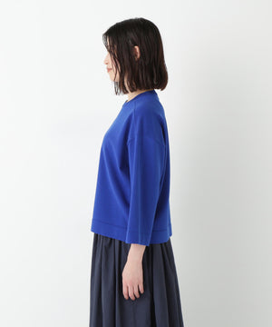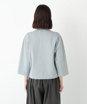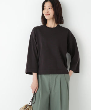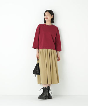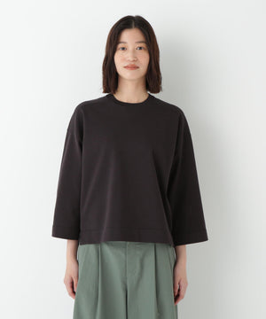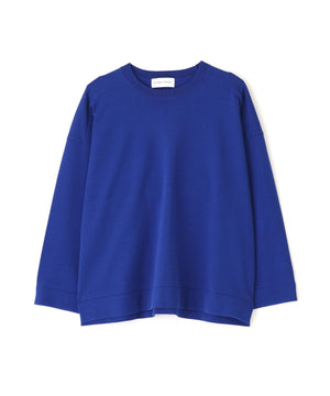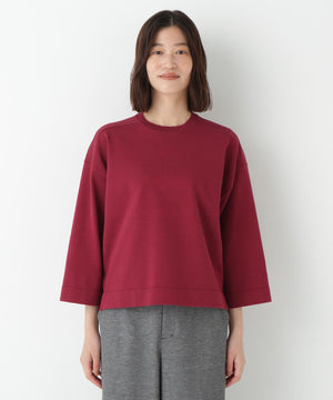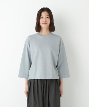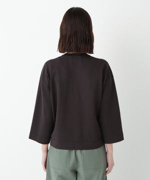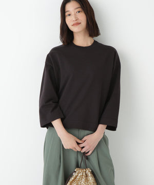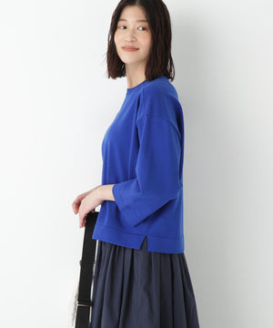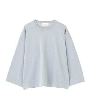 トレーナーの裾と袖口をカットしたようなシルエットのプルオーバーです。裾も袖口も体から離れているので風通し良く着ていただけます。きれい見えにも活躍するニットTシャツです。