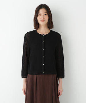 メッシュの立体感が目を惹くブークレニットカーディガン