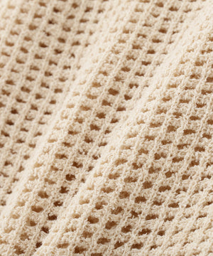 かぎ針編みを意識した方眼状の編地で透かし編みで軽さがあります。軽い仕上がりでマットな見え方が特徴です。