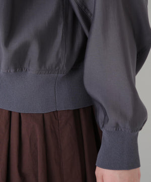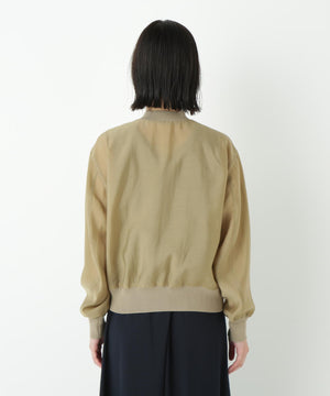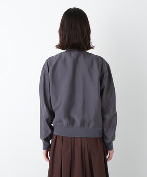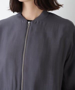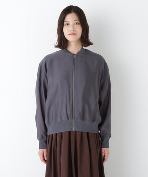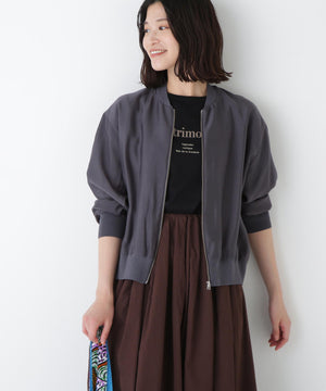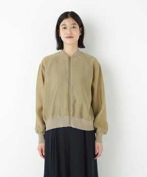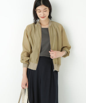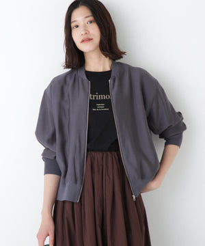 ニット付属をドッキングした布帛素材のシアーブルゾンです。シンプルなシルエットとベーシックなサイズ感はシーズンの変わり目に重宝するアイテムです。縫製にもこだわった裏側の仕様も美しい大人っぽい仕上がりになっています。