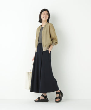 品の良いツヤ感とハリがあり、肌離れのいい素材です。透け感も丁度よくインナーを気にせず着ていただけます。