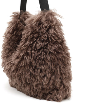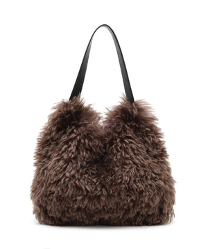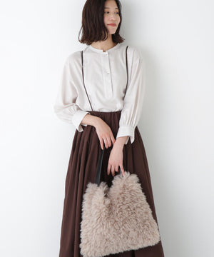 ふわふわな肌触りが気持ち良い上品な毛足のフェイクファーで仕上げています。持ち手には高級感のある表革見え合成皮革を使用しています。