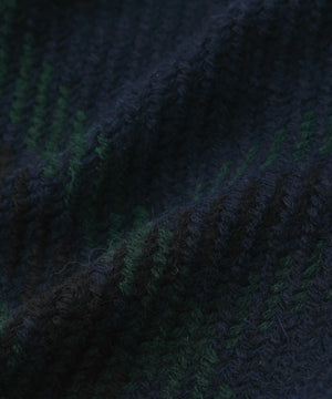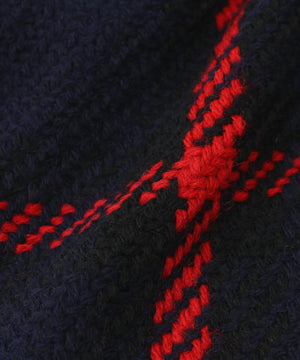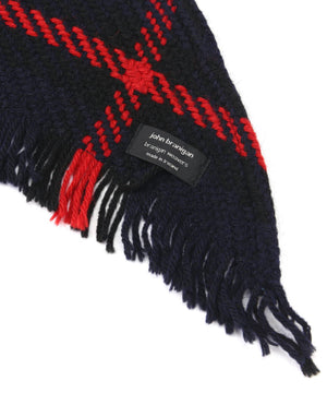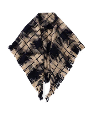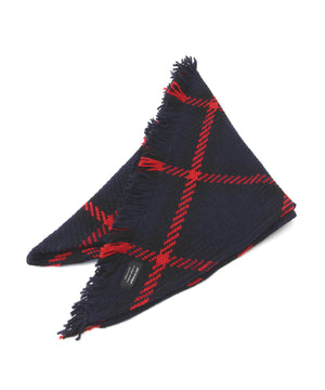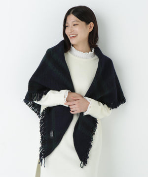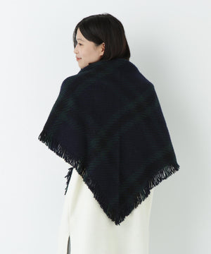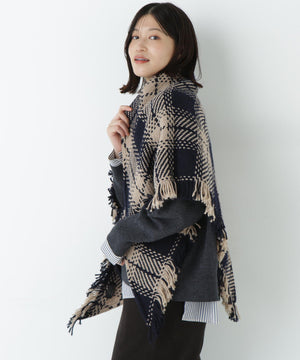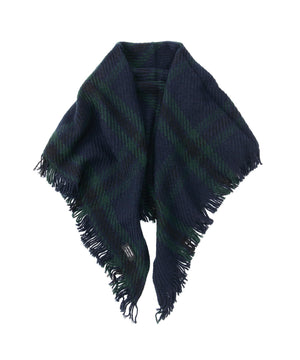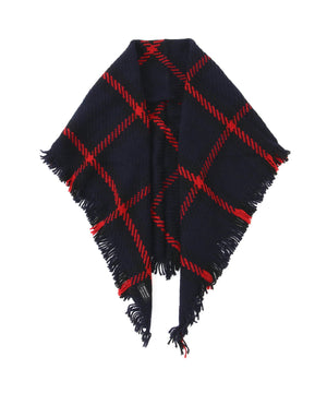 大振りなチェック柄がトラッドな雰囲気漂うトライアングルフリンジストールです。