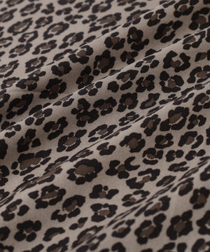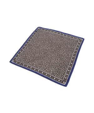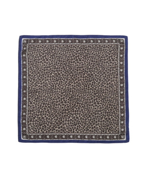 高級感ある肌触りと光沢の12匁シルクツイルを使用しております。シックなカラーのレオパード柄の縁に爽やかなブルーを効かせた配色での展開です。