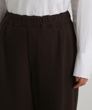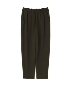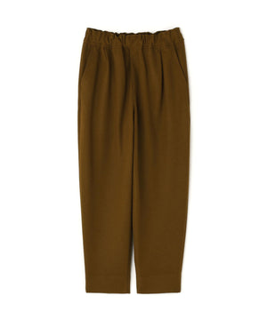 落ち感のあるジャージ素材のテーパードパンツ。シンプルできれいなテーパードシルエットにはフロントに前あき風のステッチを加えて1枚で着ても様になるデザインに。ウエストの内側のテープでサイズ調節ができます。