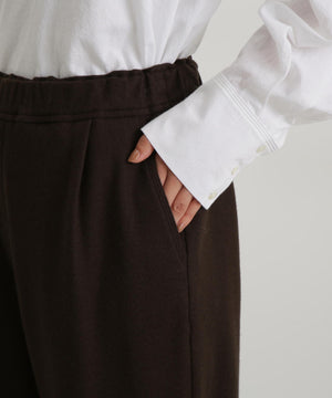 シルエットにこだわった大人のジャージーテーパードパンツ