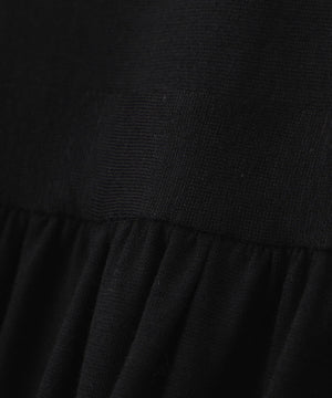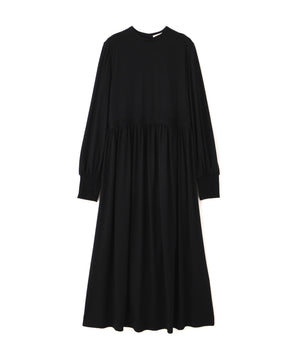 薄手のウールジャージーのワンピース。wagonaのシグネチャーディテールを肩に施しました。透け感のある素材はペチワンピース付きで安心。袖口のリブの切り替えはデザインにもなり折り返して長さの調節もできます。