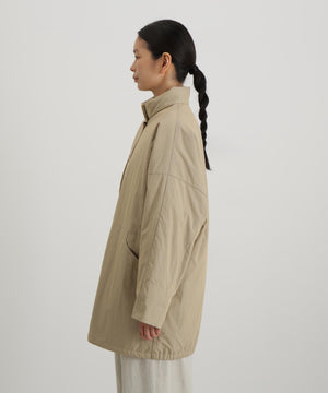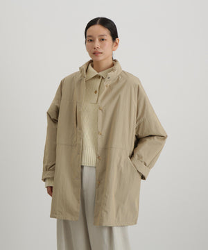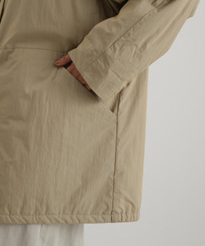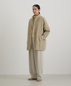 リサイクルナイロンとコットンのポプリン素材。ナチュラルな表情がありながら初期撥水機能もあり便利に着ていただけます。