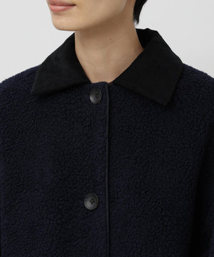 異なる素材の表情を楽しめるリバーシブルボアコート
