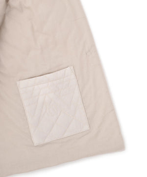 薄く軽い初期撥水の機能があるエアーナイロン素材を使用。見た目はナチュラルなしわのある軽さのあるナイロン素材に中綿とキルティングの加工しています。