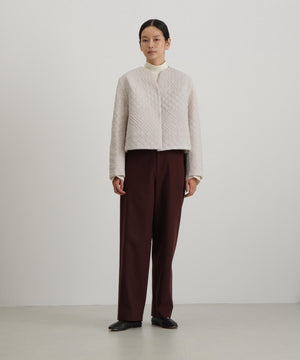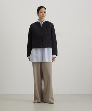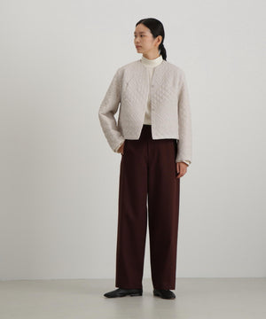 ショート丈のジャケットはワイドシルエットのパンツやワンピースなどにも幅広くバランス良く着ていただけます。