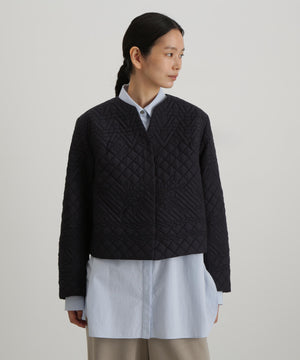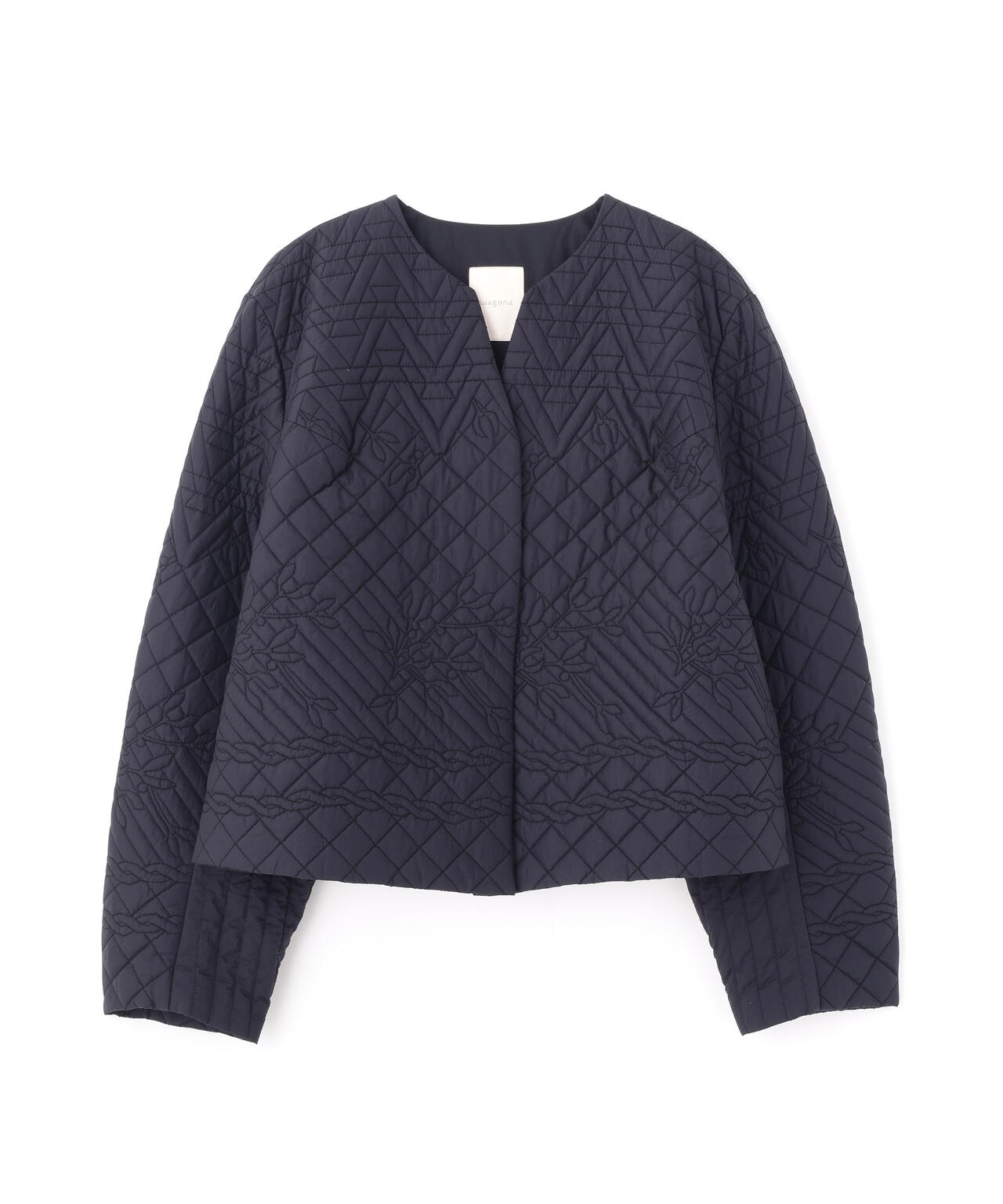 刺繍の陰影が美しいキルティングナイロンブルゾン