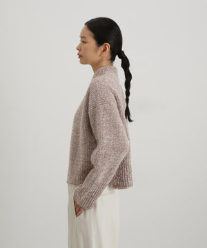 短めな着丈と程よくゆったりとしたサイズ感のニットはボリュームのあるパンツやスカートやワンピースとのレイヤードも楽しめます。