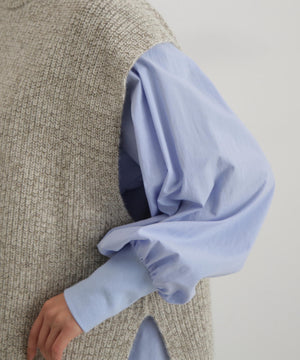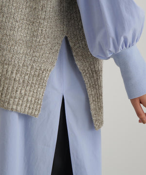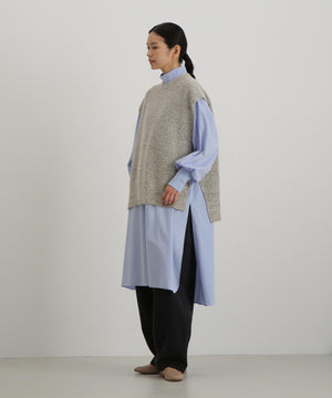 程よくゆったりとしたサイズ感のベストは袖にボリュームを出したブラウスとの合わせがお勧めです。ワンピースとのレイヤードも楽しめます。