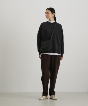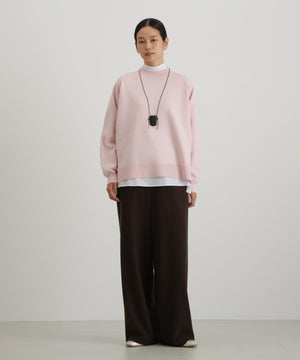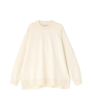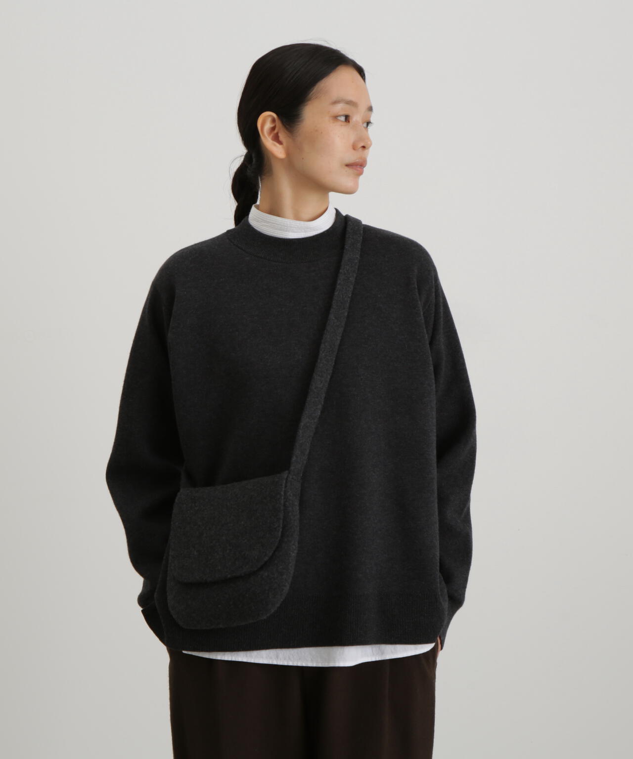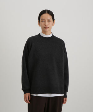 ソフトでとても滑らかな肌触りのトレーナー風ニットは袖が上向きのバンザイをしているようなユニークなデザイン。腕の上げ下げが楽に感じ、腕を下ろしているときは綺麗に収まるwagonaのオリジナルのパターン。顔周りにくる衿ぐりのリブに厚みを持たせ、サイドにはスリット開きのディテールを入れシンプルな中にもニュアンスを出しています。長いシーズン着用できるプルオーバーです。