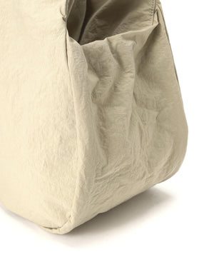 タスランナイロンのシワ感のあるコットンライクな生地でとても軽い素材を使用。持ち手のwagonaらしい丸ひもは汚れてもさっとふけるようにフェイクレザーを使用しています。