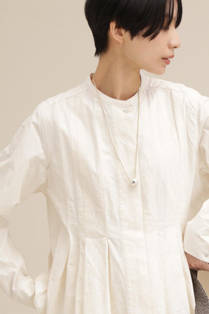 ヴィンテージのスズのパーツから着想を得てオリジナルでデザインした鈴のトップパーツに雰囲気あるベージュの太めのエンブロイダリーコードネックレス。小さなコネクトパーツをスライドさせ、チョーカーからロングまで自由に長さを変えられます。鈴は中空で開閉可能な仕様なのでお気に入りの香水をしみこませたり大切なものを忍ばせられます。
