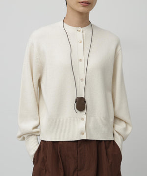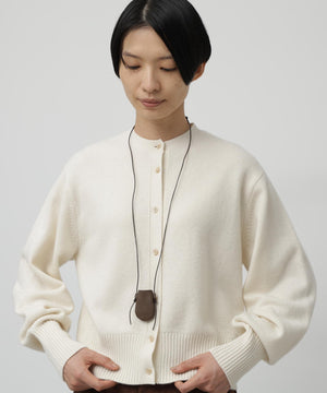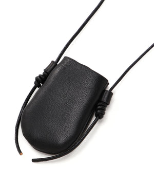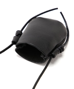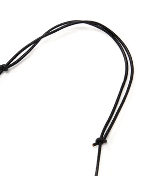 wagonaオリジナルレザーネックレス。小さなポケットのようなモチーフのネックレスです。モチーフのサイドのひもには螺旋をイメージした結び目が特徴です。小さなお気に入りのものを入れ楽しんでいただけます。メガネをひかけて使用していただくことも可能です。長さはサイズ調節が可能です。