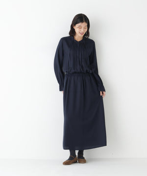同素材を使用したスカートとセットでワンピース見えの着方がおすすめ。ジャケットのインにもしやすいサイズ感です。