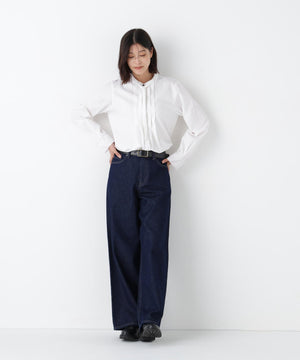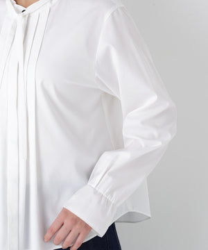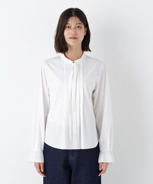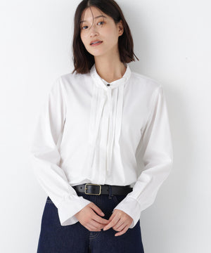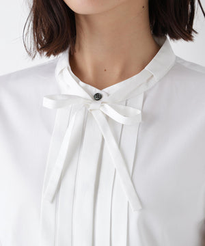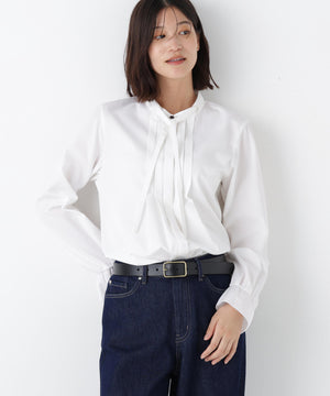 細めのリボンタイと、フロントタックが上品なブラウスです。袖口にはピコミシンを使用し軽く仕上げております。