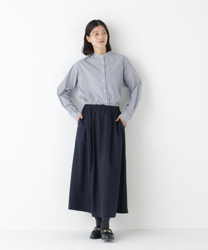 同素材を使用したスカートとセットでワンピース見えの着方がおすすめです。ミドルゲージニットなどの重めのトップスともバランスのとりやすい一枚です。