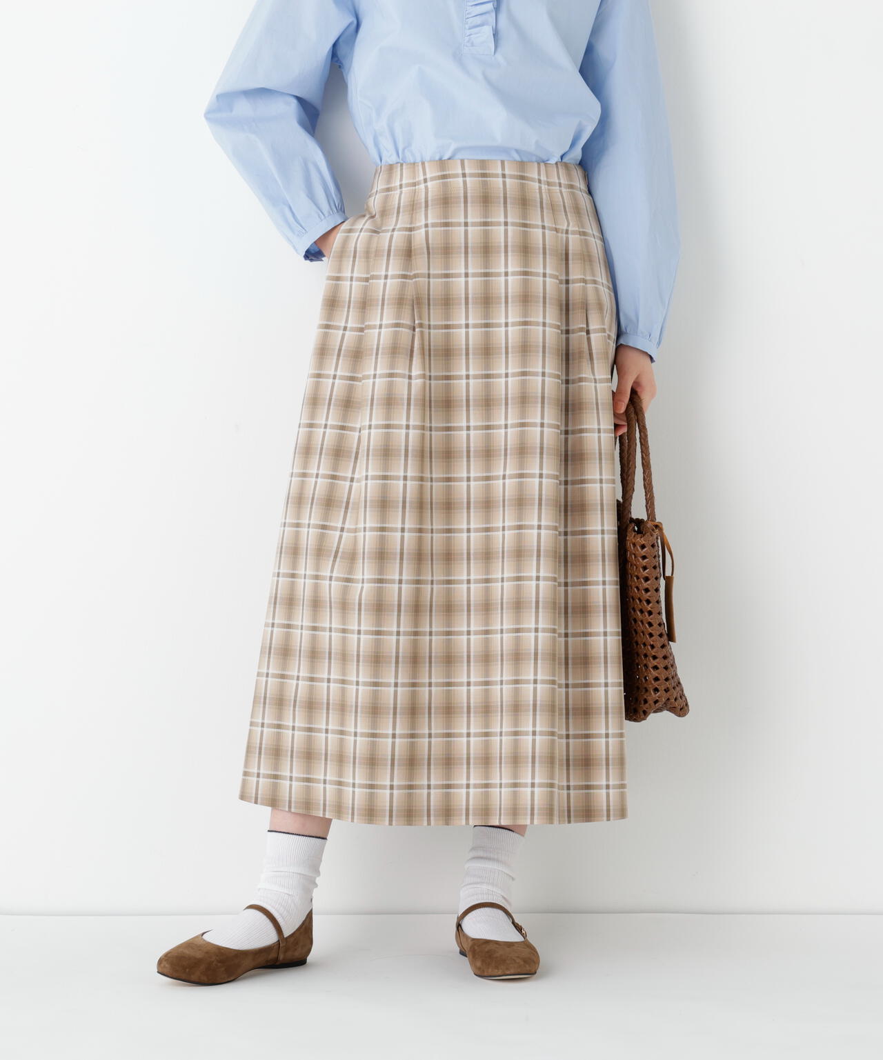 オリジナルドビーチェック柄のタックスカートです。ウエストをすっきりと作ったシンプルなデザインです。