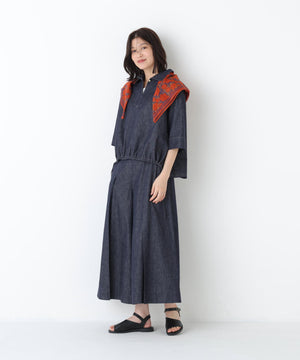 マリンデザインの効いたライトオンスデニムタックスカーチョです。ステッチを微配色でさりげなくカジュアル感を出しています。