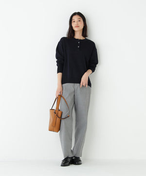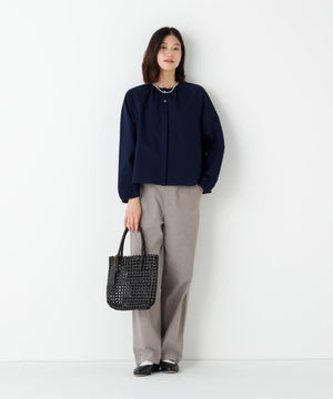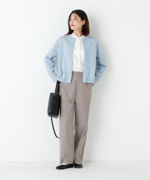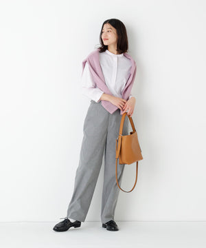 シンプルでシーンを選ばない大人のストレートパンツです。素材の色に陰影があるので、きれいめにもカジュアルにもスタイリングしやすい春の万能アイテムです。