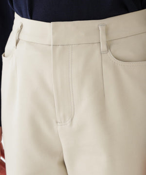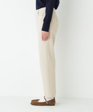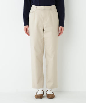 ビッグシルエットのトップスやチュニックブラウスなどと好相性のすっきりとしたストレートパンツです。オンオフ問わず幅広くスタイリングしやすい汎用性の高いボトムです。